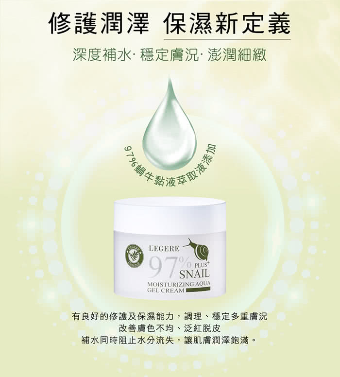 【LEGERE 蘭吉兒】水感防護素顏霜X1+97蝸牛植萃保濕水凝霜X1保濕效果好嗎適合什麼膚質