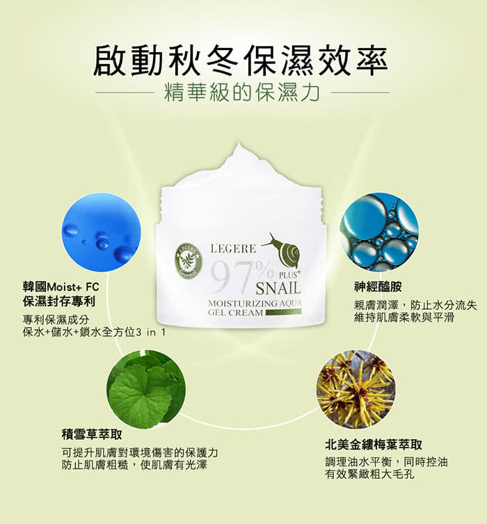 【LEGERE 蘭吉兒】水感防護素顏霜X1+97蝸牛植萃保濕水凝霜X1哪個季節使用比較適合