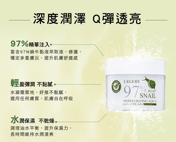【LEGERE 蘭吉兒】水感防護素顏霜X1+97蝸牛植萃保濕水凝霜X1使用上會不會太油膩除了保濕還有其它用途嗎