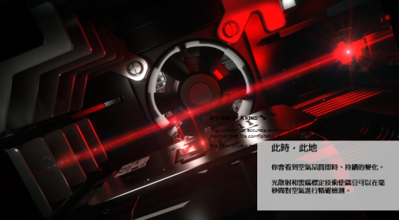 - 精準核心技術,鐳射散射技術準確偵測空氣品質。